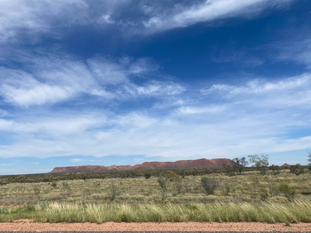 Before the road becomes red dirt, we detoured up Tyler’s Pass to catch a glimpse of Tnorala/Gosse Bluff. So impressive. Believed to be formed 140 million years ago by a comet about 600m across crashing to earth. You can drive inside this crater to explore, which is something I’d like to do another time.