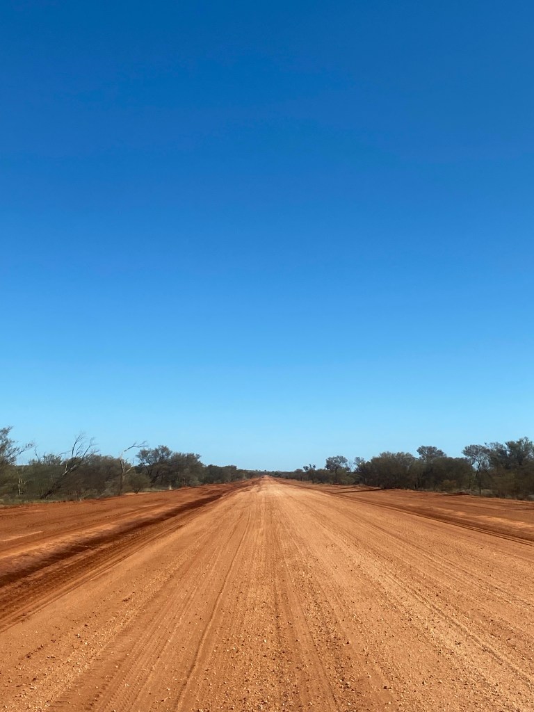 We packed up and left in the morning after the kids enjoyed a pretty epic game of handball and I made the most of the amenities and had a nice warm shower before we left. The advice from some people at the caravan park was to head to Leonora, the next ‘big’ town, that might have oil. We needed more diesel, again. And again it was a bit of an interesting experience. There were a group of local Indigenous people just sitting at the servo. I couldn’t figure out why until a man drove in and called out his window. He was driving a car and holding the driver’s door shut through the open window. When he needed two hands on the wheel, the door would fly open. One of the men inside the servo fence made his way out and handed this man two individual cigarettes. I could see how much money was exchanged, but this as well as the news of midnight alcohol exchanges further highlighted that addiction must be a significant issue.