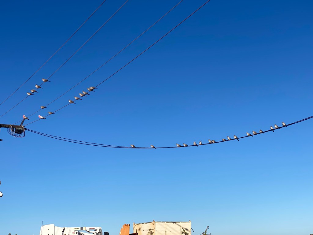 In the morning, which was still freezing, we were visited by the resident peacocks, a three legged dog, a whole bunch of pigeons and a couple of cute galahs. We had breakfast, packed up, and went to fill up with fuel and pay for camping. This was our most expensive diesel yet at $3.40/L. The servo was an interesting experience indeed. We were stung $70 for staying the night, which blows my mind as this is what we were charged per night for a fantastic powered site with a great view and fabulous ammenities at Kings Canyon.