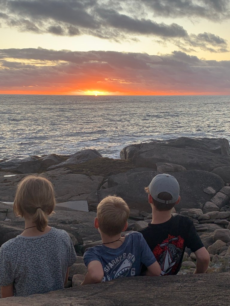 I am the one chasing the sun, and I will watch the sun set at any opportunity. We drove back to camp, but drove past it and continued down to Conto Beach where the sun was setting beautifully over the ocean and the kids enjoyed exploring the rock pools and watching the waves crash fiercely into the walls of rock that frame the ocean.