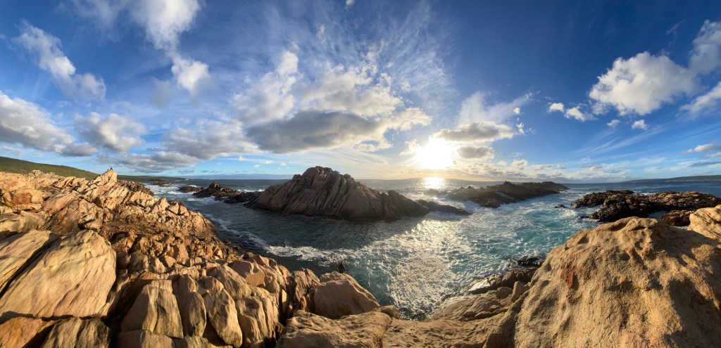 It was then on to Canal Rocks, which was another little piece of natural eye candy. Especially as the sun decided she was done for the day and threw her amber colour palette across the sky, soaking the clouds gold as a perfect accompaniment to the tranquil blues of the sea and sky, and the burnished copper of the rocks. Our kids could rock climb and explore these coastal rocks for hours and hours. The perfect ending to such an enjoyable day.