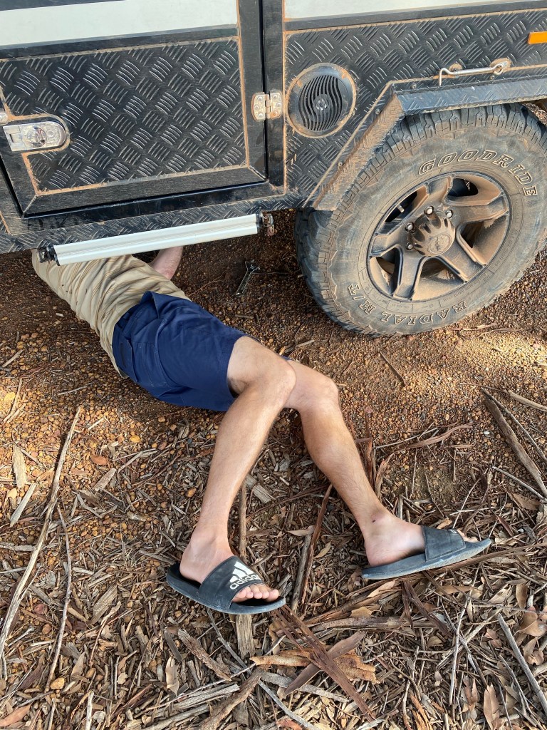 Today is leaving day and we have two days to get to Kalbarri to stay on schedule. Before we go, we must align these wheels! I wasn’t sure how to feel about the fact that Margs had turned on the most ideal weather for our departure and wheel alignment endeavours.
