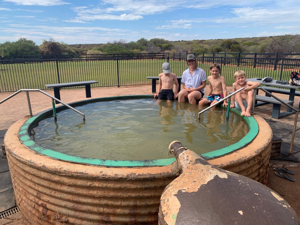 There was an art instalment that walked you through the history of Shark Bay from pre-settlement to now. After learning about the history of the area we walked through the cool taxidermy exhibit with a fox, bilby, thorny devil, pigeon, bat, snake… heaps of things. The kids loved it, and we then ventured out the back to the hot tub.