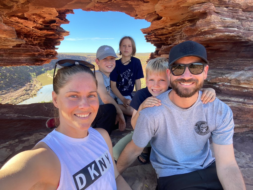 Natures Window; however, is cool. It’s not mind blowingly awesome. And it surprises me that this spot tops the list of awesome places in Australia for some people, but it was cool. The window itself, but also just the gnarly rock walls and the fact that you can walk along on the top of the cliffs with nothing but a few warning signs is awesome. We snapped some photos in this iconic spot, and piled back into the car. We had the windows down for the very short drive to the sky walk as there was about 17 000 flies that had to be shooed out of the car. The Skywalk was also cool. Interesting engineering. I was happy that all three kids were willing to walk out on both platforms. I wouldn’t have been disappointed had they not, and after Joey and Teddy both declared that they wouldn’t, both Leon and I made sure they knew they could stay on the firm ground and watch while we walked out, and still catch the views. Teddy and Joey chose the close-weave walkway which obstructed the view below, but I was impressed that they calmed their nerves enough to step out at all in the absence of pressure or even encouragement.