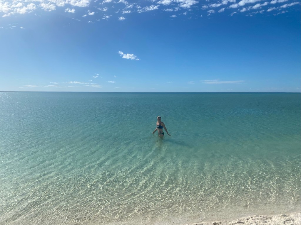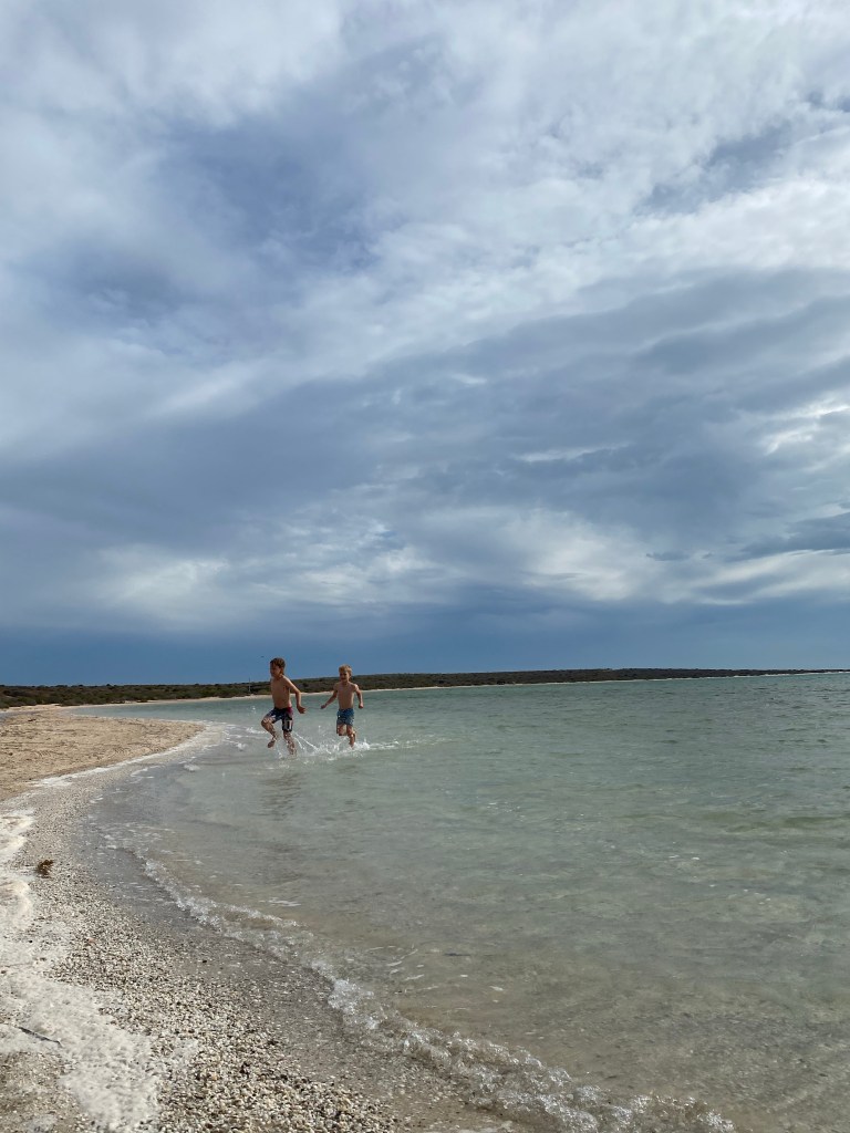With the decision to stop at Shell Beach made on the road, we weren’t prepared for a swim. So we all went in in our underwear!