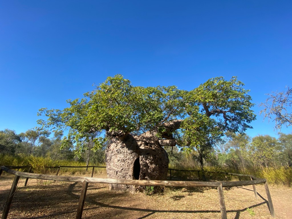 As we drove in we stopped at the Boab Prison Tree. It is said that when indigenous people were ripped from their homes by blackbirders recruiting workers for the pearling boats, that after walking in chains for hundreds of kilometres, the young indigenous men would be held at the Boab Prison Tree while waiting for boats. It is also protected under the Aboriginal Herritage Act, I believe for its connection to traditional/religious beliefs.