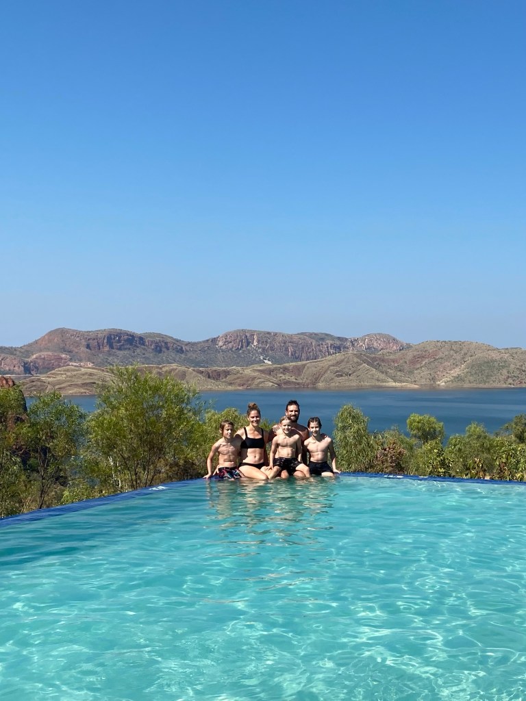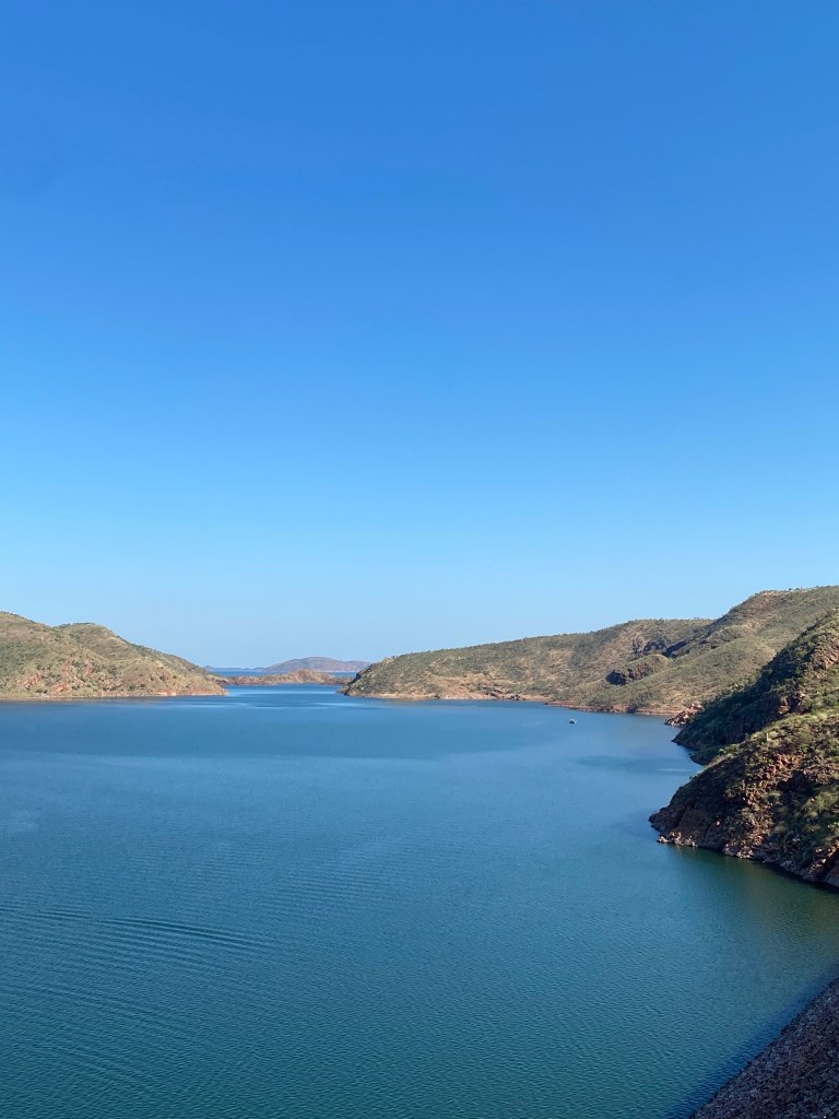 For lunch we cooked up some more of the fishing charter fish and my favourite butter bean salad. After lunch our family took a drive to the dam wall. The Lake Argyle story is a pretty cool one, and one I didn’t know (or didn’t remember maybe) until this visit. It’s the second largest artificial dam in Australia. The lookout overlooks the lake and the dam wall, and delivers an impressive view of a massive lake surrounded by the Carr Boyd Ranges that plunge into the water to form its boarder. Dotted through the lake there are little islands that break up the great expanse of water. The dam wall is 335m long and 98m high enabling the dam to hold 10,763 gigalitres of water! We drove over the damn and stopped at the park to look out over the Ord River where we spotted quite a few crocs swimming and some interesting birds flying around.