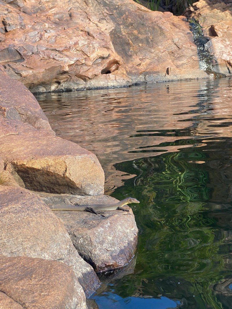 Not too long after I’d finished my look around the Homestead, Rob arrived on his mountain bike. Turns out the bike track from the caravan park to the homestead isn’t well used. From memory he was in bare feet, maybe thongs, and for the majority of the ride he couldn’t see the ground because of the overgrown spinifex. There was the time he rode over a dead snake though. He saw that! Compounded by no phone reception, he wasn’t too keen on riding home. So we loaded his bike on the roof of the troopy after he had an explore, and headed back to camp for an afternoon swim.