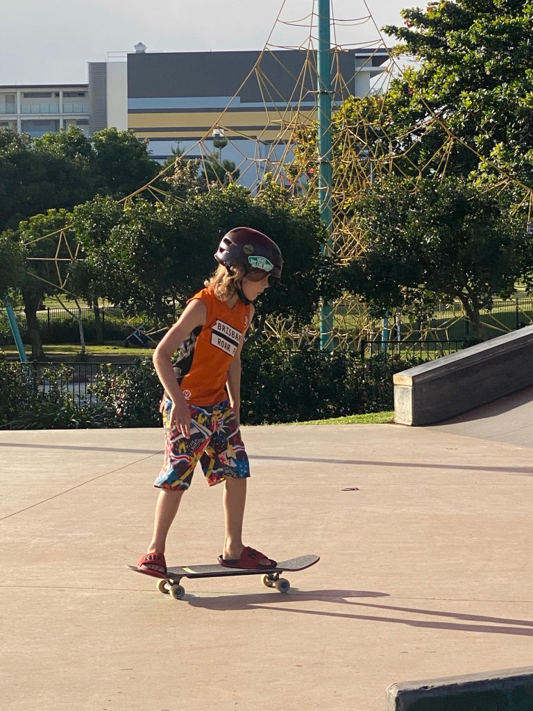 We had a cruisey morning, the kids playing with other kids in the park at the jumping pillow and in the pool/water park. Leon and I managed to catch up on some washing as well as relax. For the afternoon we went into town for a bit of a look around and to do the groceries. It was a bit too cold to hang out on a beach, so we went to a park and the kids had an awesome time climbing the spider web. There was a skate park there so Leon and Malachi got in a bit of a ride and Joey and Teddy joined in for a roll around in the final minutes of our stay. Then we headed to do groceries, and it was a great surprise to run into Cass (who lives in Yeppoon) in Woolworths. As I can do I got talking with Cass and catching up and having a great time, probably holding up the deli line for far too long. We finished the groceries and headed home for dinner and bed.