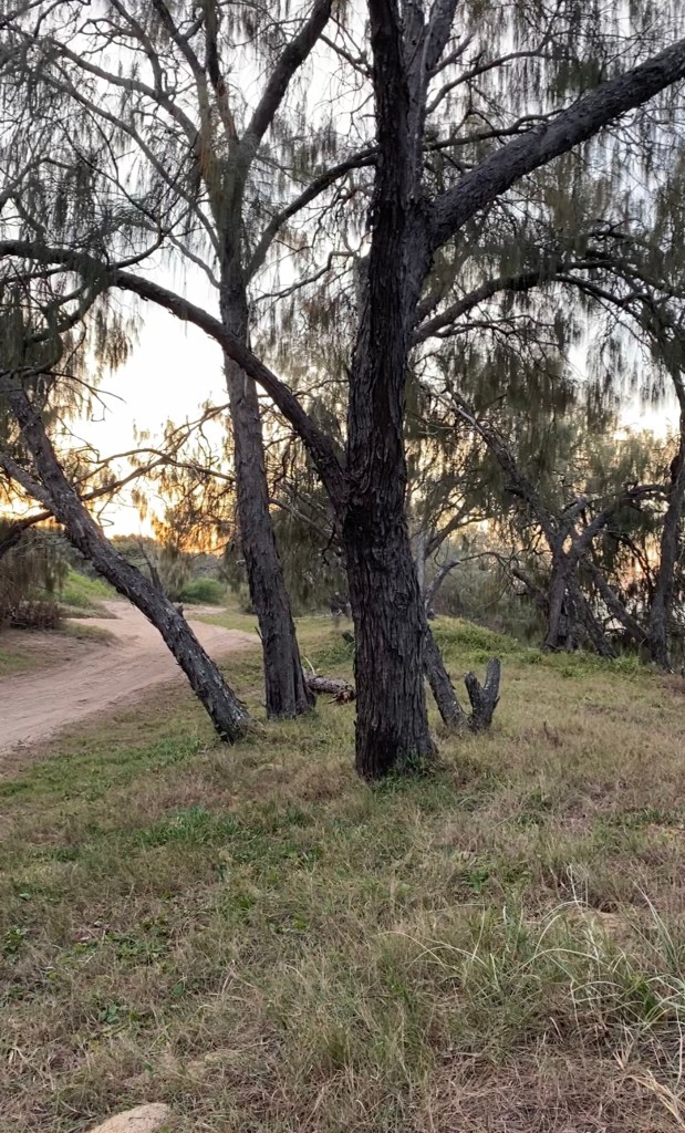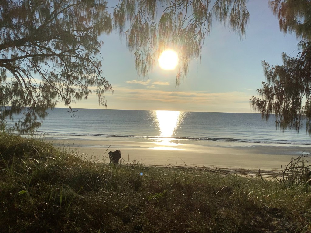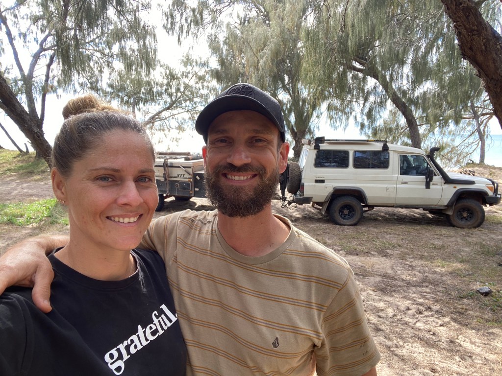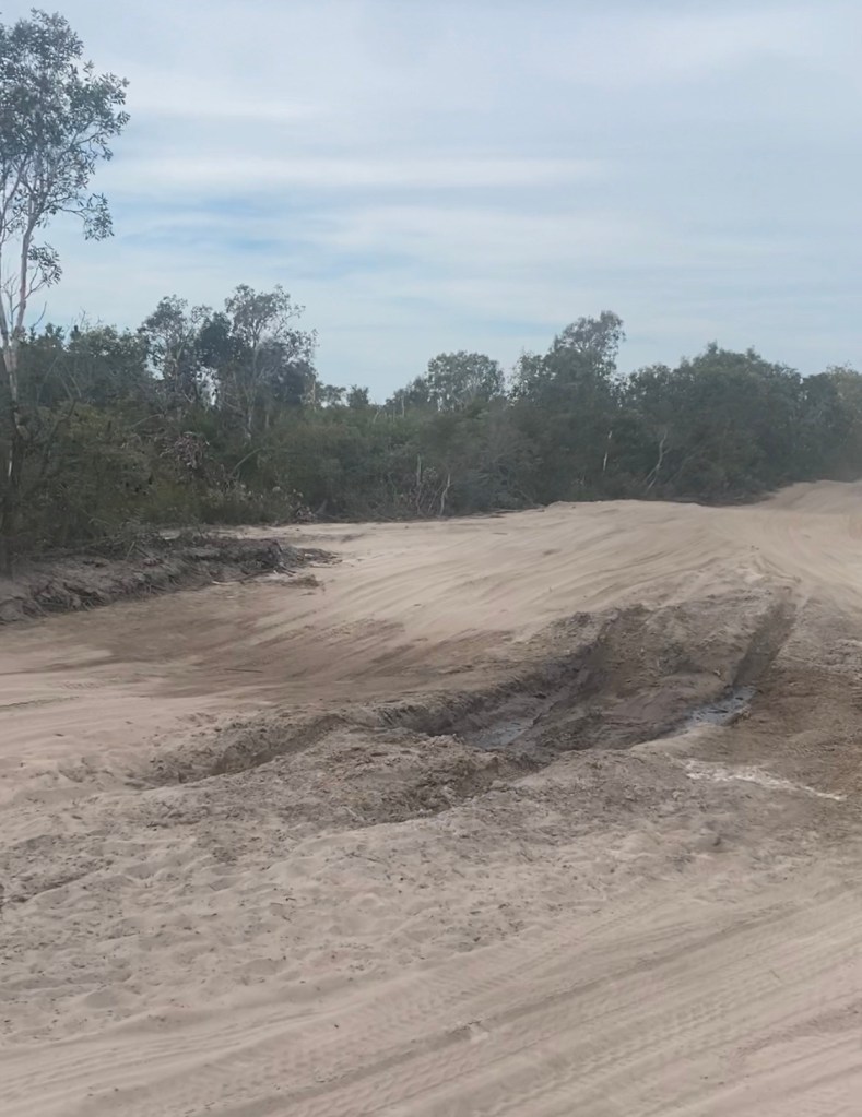 As we entered Burrum Coast National Park and the road become sand, we stopped to let the tyres down. We’ve read some reviews that say the tracks in are pretty soft. With the pressures pretty low we got to it. They were fun tracks, lots of small rolling hills, some big dips and significant washout from past rain, and lots of very soft sand. We’re a heavy rig so soft sand is a challenge, but we made it through some pretty tough spots and knew we were only a couple of hundred meters from the campsites when he hit the softest of sands and the tyres dug in. Three months on the road, never bogged, a thousand kilometres from home in familiar territory as it’s similar to how Mulgumpin (Moreton Island) can be at times. Leon and I were onto pretty quick, shovel out and maxtrax ready (we’ve never needed them). The sand was so soft that the shovel almost didn’t work. The sand would just fall back in. After one attempt and not making much progress, a man and his three teenage sons pulled up behind us. They were genuinely helpful and not your typical gung-ho cowboys which was much appreciated. They didn’t actually do much except some shovelling, but we were happy to have them around rather than wishing they’d just rack off. In the end we lowered the tyres all the way to 12psi and still needed the maxtrax, but once we were out we were good, and we thanked and farewelled the boys who were happy to have some excitement.